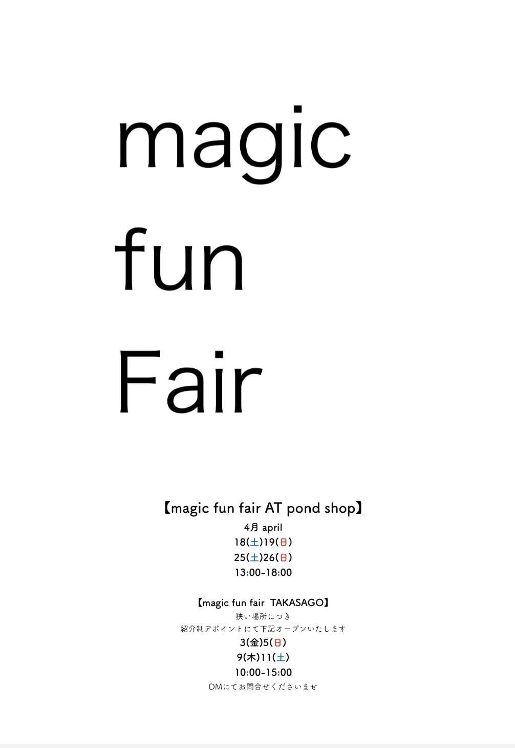 【 MAGIC FUN FAIR TAKASAGO】